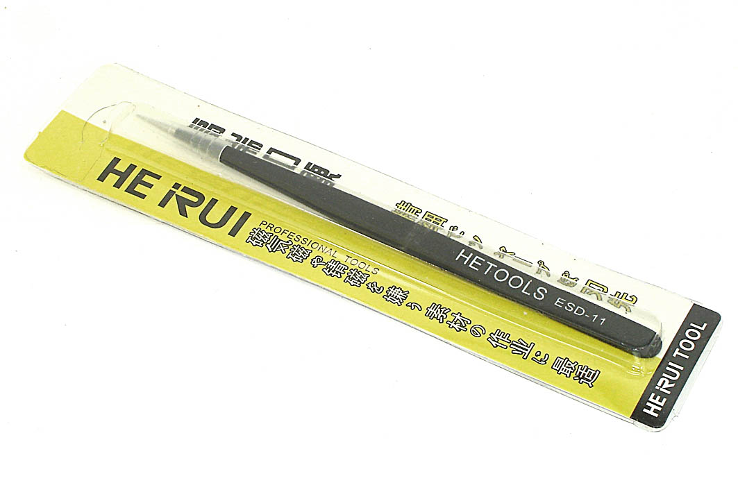 Пинцет HETOOLS ESD-11 прямой, чёрный 140мм